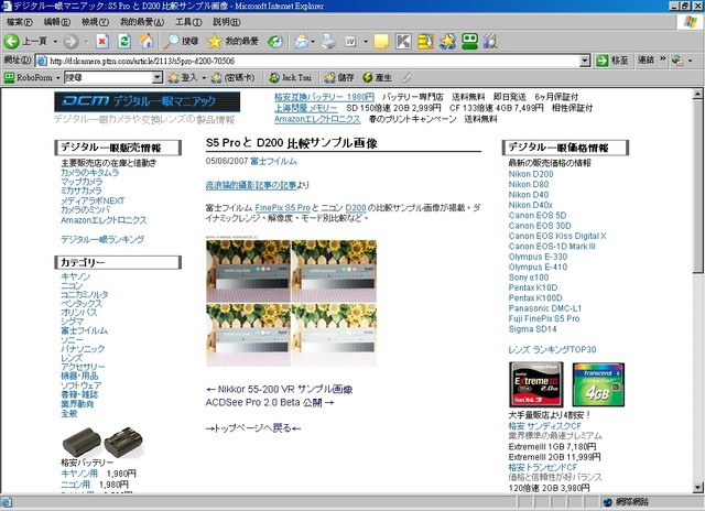 很意外的,在日本某個DSLR入口網站發現自己的blog介紹,原來是介紹我的D200 VS S5Pro相關文章.........