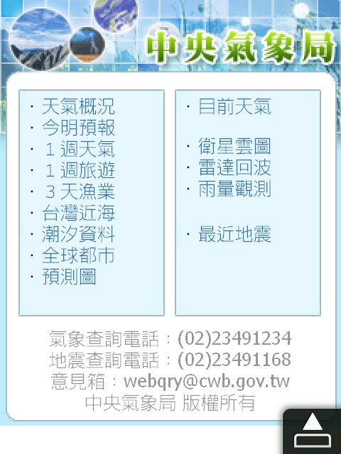 中央氣象局WAP網頁網址