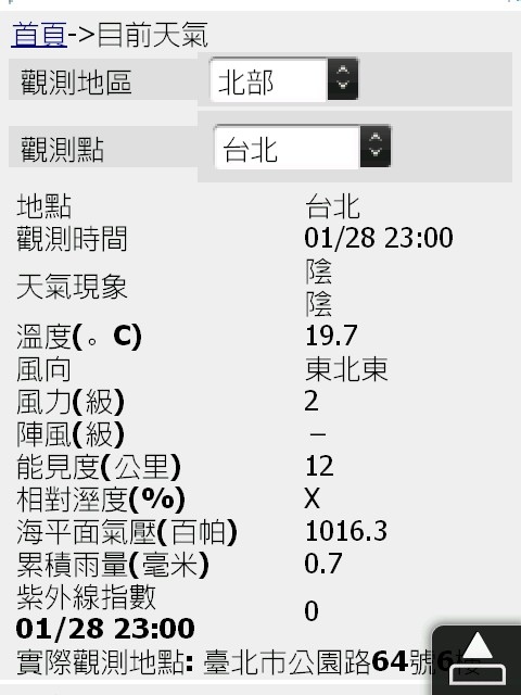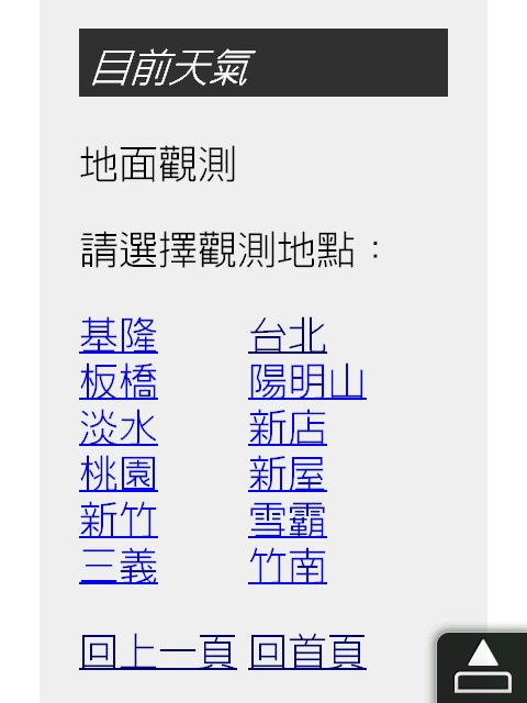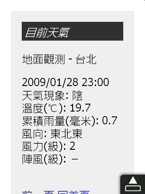 這是PDA網頁的首頁畫面,我們可以看到,跟中央氣象局的WEB網站可以看到的氣象資料差不多