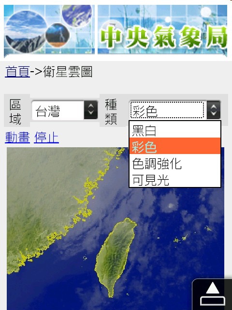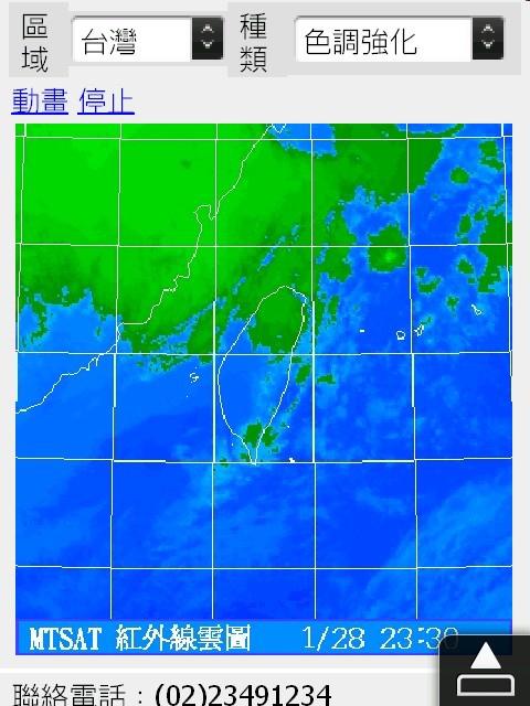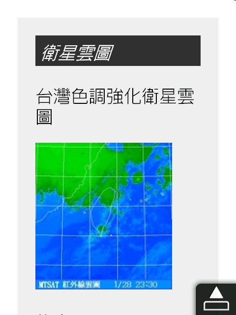 點選"衛星雲圖"後,我們可以看到跟WEB網站一樣,有各尺度(全球,東亞,台灣)