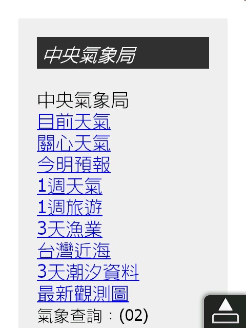 接下來,我們點選中央氣象局的WAP網站,看看差別在那裡